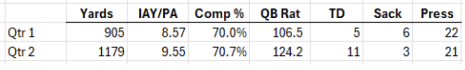 Both against Penn State and Oregon, seen as big wins on the road, I thought there was good and bad tape on Mendoza. You do seem some big throws, delivered to the right area on time enabling his targets to make plays. I do think you also see a ton of high-percentage stuff, a lot of back-shoulder focus and I’m never really wowed watching him.